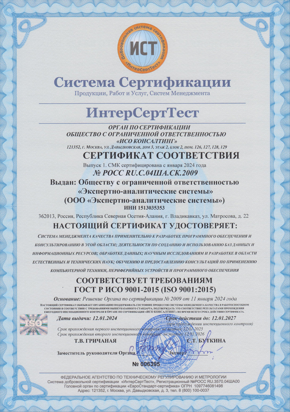 Ответственность за реализацию политики в области качества высшие менеджеры группы компаний «Экспертно-аналитические системы» возлагают на себя, гарантируя ее претворение в жизнь и доведения ее требований до каждого сотрудника группы компаний.